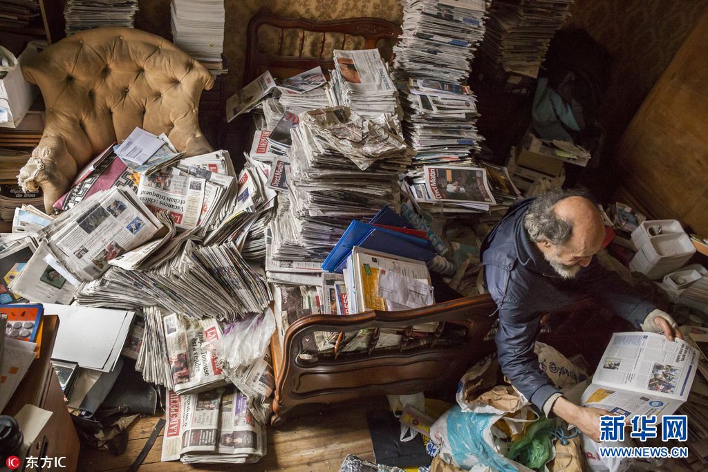 Jean对垃圾有着令人难以理解的痴迷,任何别人丢弃的东西,对他而言都是宝贝,废旧的报纸书刊、吃剩的盒饭、腐烂的水果食物……Jean的家里几乎被垃圾侵占,甚至连床上也堆满了垃圾,晚上睡觉只能倚靠在床脚,拽一小床被子入睡。每天晚上,Jean都会走出家门沿着相同的路线,翻捡垃圾桶“寻宝”,吃别人吃剩的食物,阅读别人遗弃的报纸书籍,更多毫无用处的东西被他带回家里珍藏起来。但由于大批量的垃圾收藏,Jean家中的卫生严重影响了其他人,也出于对Jean自己健康的考虑,法国政府每年会强制派人来给他进行大扫除,但政府的好心对Jean却是一种负担和痛苦,要从工作人员的手中抢救他最爱的书籍,等清理结束便又马不停蹄地继续翻找新的垃圾回家。(图片来源:东方IC)