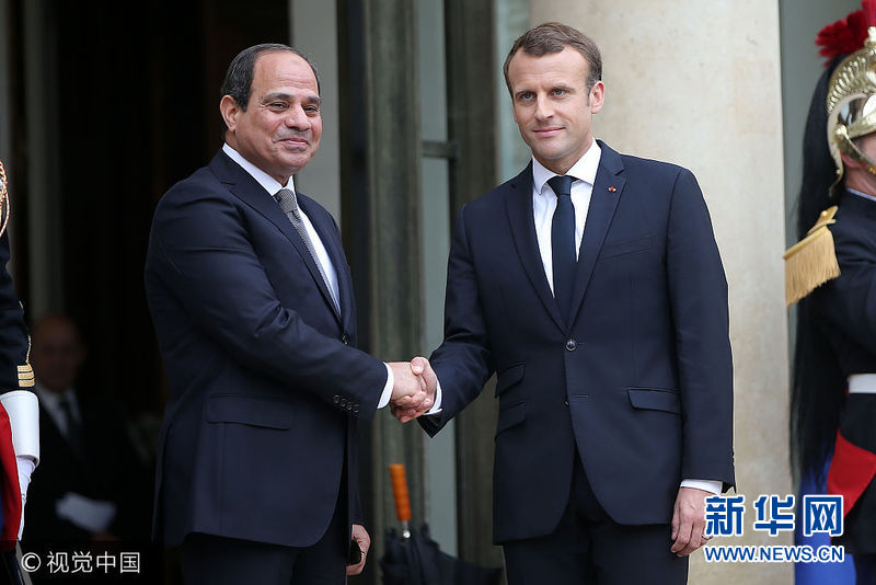 当地时间2017年10月24日,法国巴黎,法国总统马克龙会见了来访的埃及总统塞西。(图片来源:视觉中国)