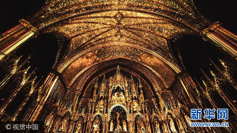 2017年10月26日讯(具体拍摄时间不详),加拿大蒙特利尔,蒙特利尔圣母大教堂正在用现代多媒体设备进行改造。多媒体娱乐工作室布置了一个放映时长为45分钟的多媒体装置,它将声音、光线和色彩缤纷的投影结合在一起,以增强教堂内建筑效果。作为蒙特利尔圣母大教堂建成375周年庆祝活动的一部分,AURA系统将这个标志性建筑重新进入人们生活。该项目团队需要一年的时间来完成包括音乐作品的录音和视觉元素等素材。在完成所有的元素之后,这个项目需要花费90天的时间来安装,还需要1个月时间进行测试。(图片来源:视觉中国)