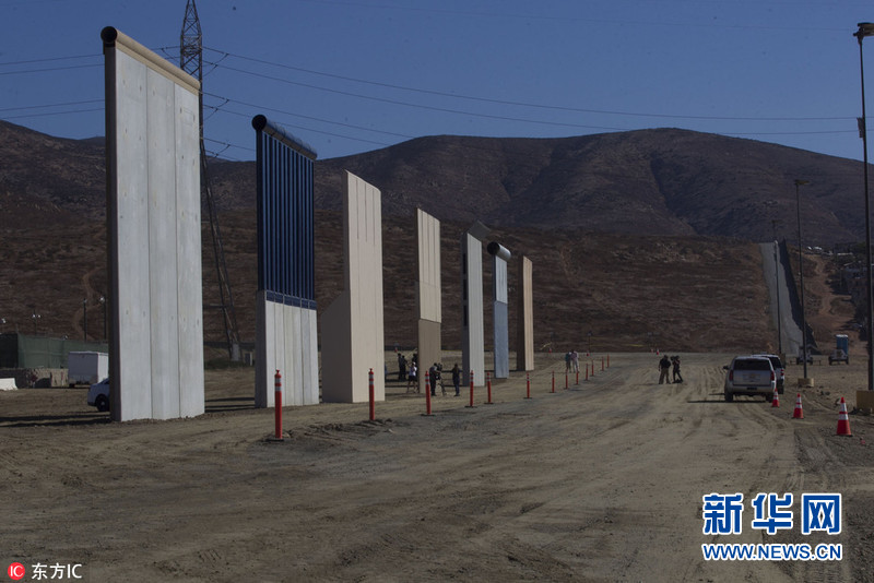 据报道,在美国总统特朗普的美墨“边境墙”计划中,由六家建筑商设计的八种围墙原型,已在加州圣迭戈市与墨西哥接壤的边界竖起。这8道样板墙每个最高耗资50万美元,其斜面、厚度及曲线等都不同,最高的有9米。(图片来源:东方IC)