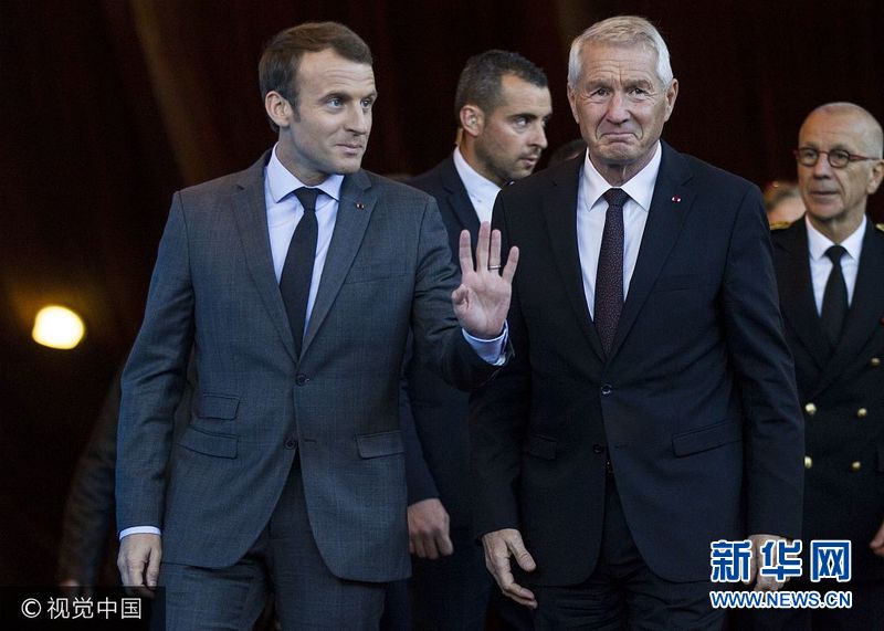 当地时间2017年10月31日,法国斯特拉斯堡,法国总统马克龙与欧洲委员会秘书长托尔比约恩·亚格兰召开联合新闻发布会。(图片来源:视觉中国)