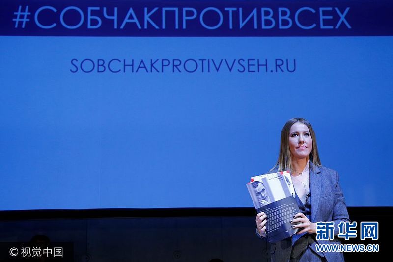 当地时间2017年10月24日,俄罗斯莫斯科,俄罗斯女主持人克谢尼娅·索布恰克在宣布有意竞选总统之后举办首次新闻发布会。据悉,索布恰克是已故圣彼得堡前市长阿纳托利·索布恰克的女儿,普京曾一度在其父的团队中工作。(图片来源:视觉中国)