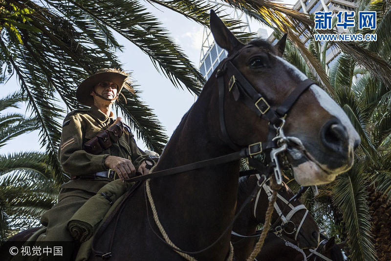 当地时间2017年10月31日,澳大利亚悉尼,民众、警察以及退伍军人代表聚集在当地举行纪念活动,纪念骑兵团与奥斯曼帝国战役100周年。1917年10月31日,近千名英国、澳大利亚和新西兰士兵战胜奥斯曼帝国军队。(图片来源:视觉中国)