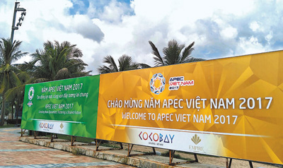 2017年亚太经合组织(APEC)领导人会议周将于11月6日在越南岘港拉开帷幕,其间将举行APEC第二十五次领导人非正式会议。图为岘港街头的宣传牌。记者 刘刚摄