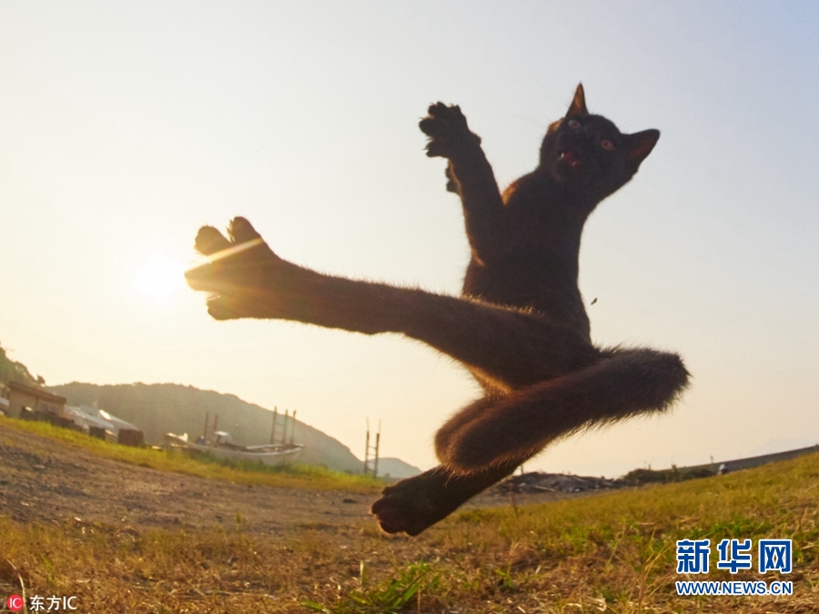 近日,日本摄影师Hisakata Hiroyuki拍摄了一组喵星人功夫大片。照片中,猫咪们腾空而起,摆出一系列飞踹,出拳的功夫姿势,满满的大侠风范。这组照片全部拍摄于日本街头。Hisakata利用一个逗猫的玩具吸引猫咪,然后拍下猫咪跳起画面。(图片来源:东方IC)