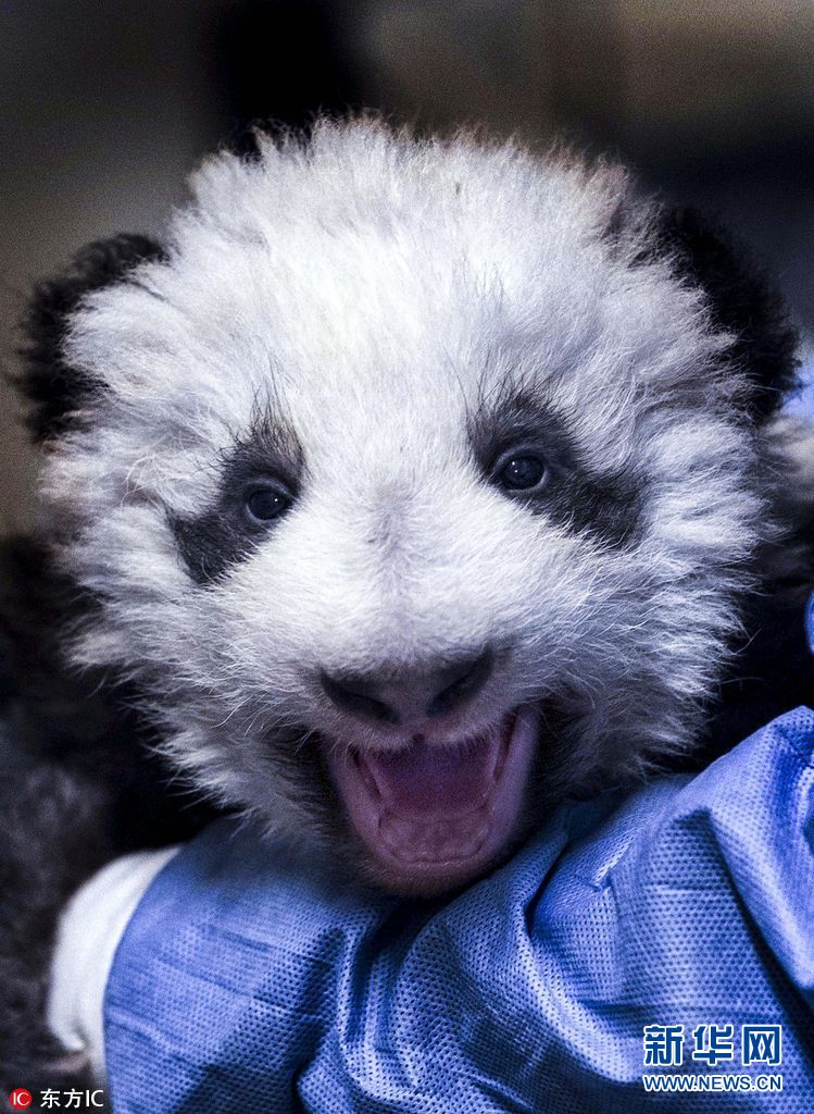 2017年11月8日报道(具体拍摄时间不详),旅法大熊猫“欢欢”产下的幼崽迷你“圆仔”日前庆祝出生三个月。面对镜头,小家伙高兴给摄影师摆了一张笑脸,可爱极了。