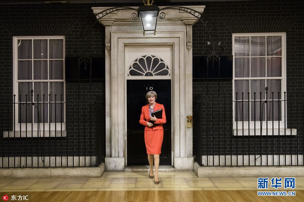 当地时间2017年11月8日,英国伦敦,英国首相特雷莎·梅的新蜡像在杜莎夫人蜡像馆揭幕。(图片来源:东方IC)