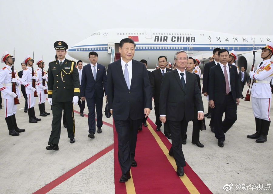 新华网北京11月12日电 中共中央总书记、国家主席习近平12日抵达河内,开始对越南社会主义共和国进行国事访问。(摄影:新华社记者兰红光 据新华社“新华视点”微博报道)