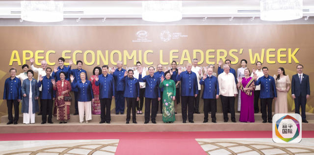 11月11日,亚太经合组织第二十五次领导人非正式会议在越南岘港举行。国家主席习近平出席并发表题为《携手谱写亚太合作共赢新篇章》的重要讲话。这是会议期间,国家主席习近平同其他亚太经合组织成员经济体领导人、代表合影。新华社记者李涛摄