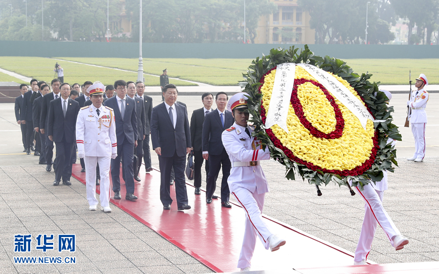 同日,习近平瞻仰胡志明主席陵并敬献花圈。