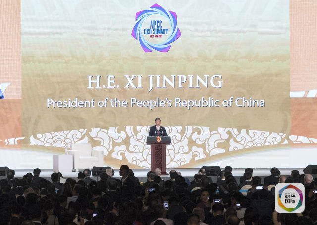 在APEC工商领导人峰会上发表主旨演讲时,习近平精辟阐述中国发展的前进征程、深刻揭示中国发展的光明前景、鲜明指出中国发展的和平本质、充分展现中国发展的世界意义,阐释中国发展道路。