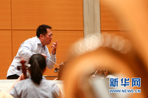11月21日,指挥家吕嘉在东京歌剧城和东京爱乐交响乐团进行彩排。新华网记者马曹冉 摄
