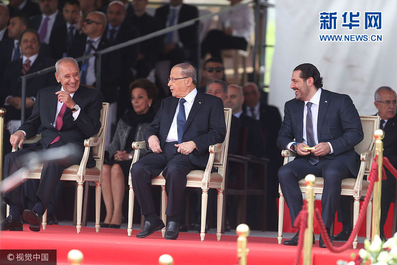 哈里里出席黎巴嫩独立日阅兵 谈笑风生欣赏士兵英姿飒爽