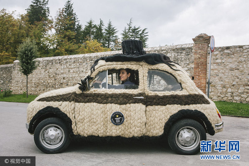 意大利帕杜拉,一位意大利发型设计师Maria Lucia Mugno花费了超过8万英镑来装饰自己的车子,这让她获得了吉尼斯世界纪录。这项工程需要150个小时来完成,用于装饰的头发总重量达到100公斤。(图片来源:视觉中国)