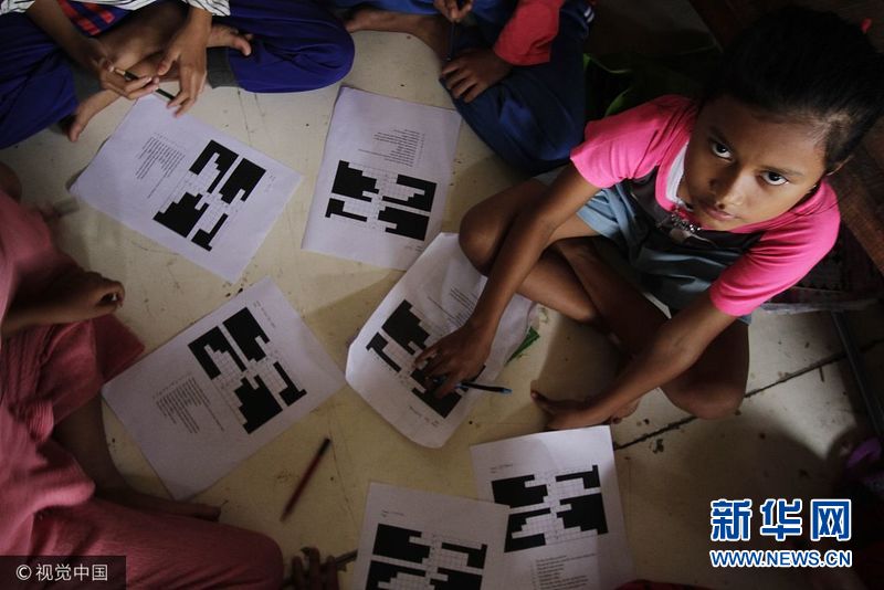 11月18日,Siti Fatimah(右)和其他拾荒者的孩子一起跟随志愿者学习。(图片来源:视觉中国)