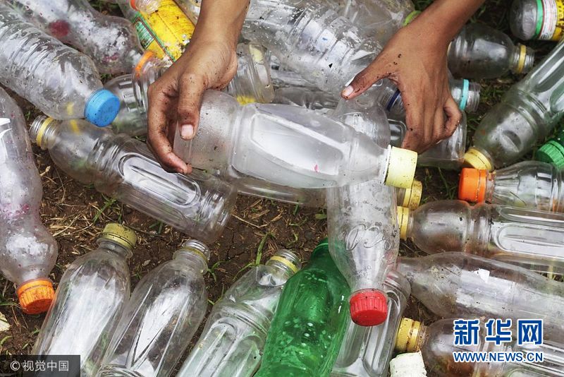11月18日,Siti Fatimah挑拣塑料瓶。(图片来源:视觉中国)