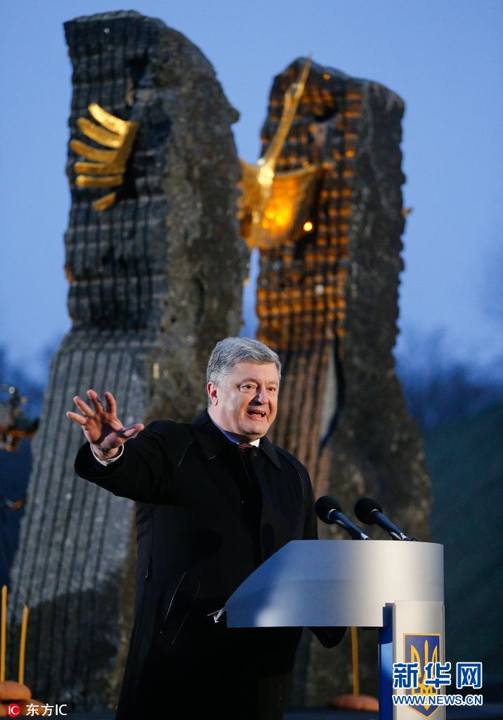 当地时间2017年11月25日,乌克兰基辅,民众举行活动,纪念1932-1933大饥荒84周年,追悼超过5百万的遇难同胞,总统波罗申科出席纪念仪式。(图片来源:东方IC)