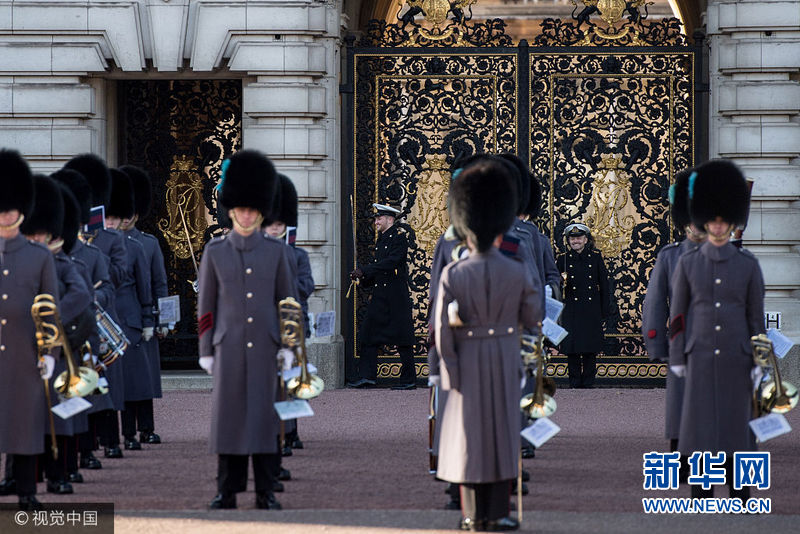 11月26日,英国伦敦,英国皇家海军作为女王及王室成员的护卫队首次在白金汉宫进行换岗仪式。(图片来源:视觉中国)