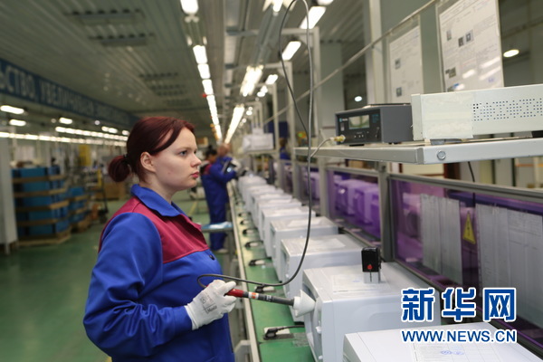 在“美的-地平线”合资公司的生产车间内,工人们在组装微波炉。新华网记者魏忠杰 摄