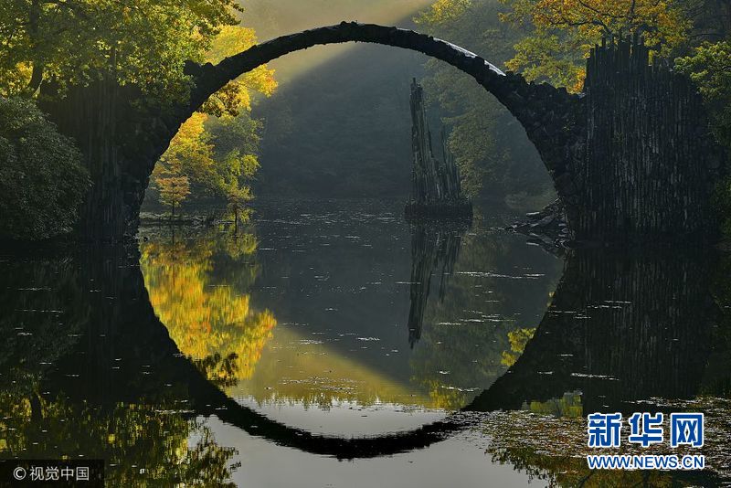 拉科兹布吕克桥位于德国萨克森州加布里兹市,被命名为“魔鬼桥”。它不单单是一座桥横跨湖面,两端还有类似于自然形态的岩石结构。这座桥最特别的地方也是桥本身和它的倒影形成了一个完美的圆。来自波兰的65岁的业余摄影师Jan Sieminski捕捉到这一静美而又神奇的画面。(图片来源:视觉中国)