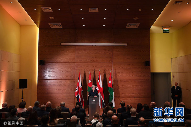 11月30日,约旦国王阿卜杜拉二世在约旦安曼会见来访的英国首相特雷莎·梅。(图片来源:视觉中国)