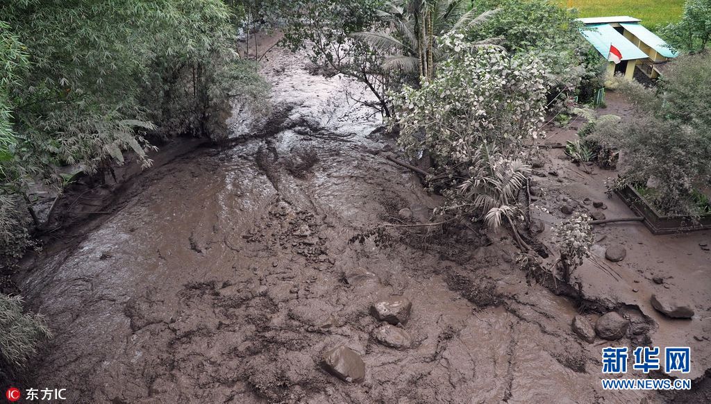 印尼巴厘岛遭火山泥流冲击 河流被染成泥河
