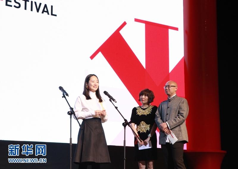 12月3日,《浮生一日》导演王林发表获奖感言。当日,2017华时代全球短片节闭幕式暨颁奖典礼在北京天桥艺术中心举行。新华网发 巩阳摄