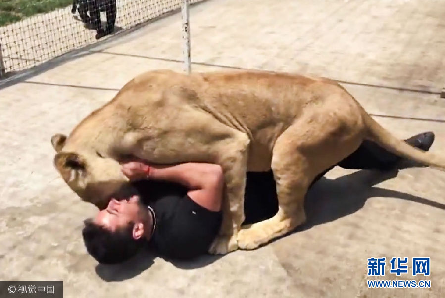 12月10日,一段拍摄于墨西哥的视频近日网络上热传,一位男子前去动物保护中心看望一只曾经被他救助过的母狮子,没想到一下子就被母狮扑倒。男子吓了一跳,但随后却出现了温情的一幕,狮子抱着男子亲昵,像撒起了娇。(图片来源:视觉中国)