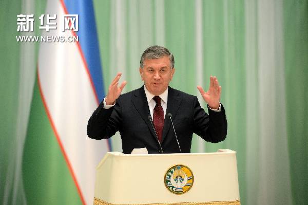 12月7日,在乌兹别克斯坦首都塔什干“国际论坛宫”,乌兹别克斯坦总统米尔济约耶夫在庆祝宪法日25周年活动上讲话。当晚,乌兹别克斯坦举行庆祝宪法日25周年活动。乌兹别克斯坦议会、政府以及驻乌使节等数千名代表出席了庆祝活动。1992年12月8日,乌兹别克斯坦第一部宪法获得通过,这一天因此被定为“宪法日”。新华网发(沙达提摄)