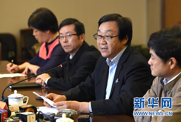 2015年10月10日,时任侵华日军南京大屠杀遇难同胞纪念馆馆长朱成山(右二)在北京举行的“南京大屠杀档案成功入选世界记忆遗产名录座谈会”上发言。新华社记者 孙参 摄