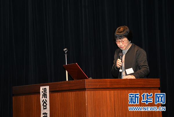2017年11月26日,南京大屠杀历史学者松冈环在日本大阪举行的南京大屠杀80周年纪念活动中发言。新华社记者 王可佳 摄