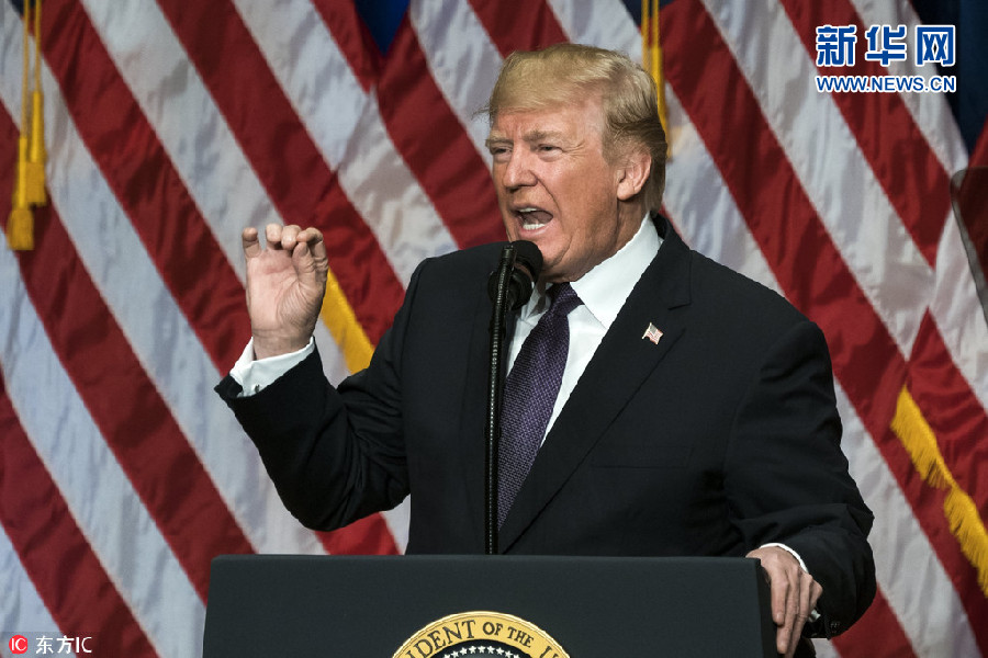 当地时间18日,美国华盛顿,特朗普政府公布特朗普任内首份国家安全战略报告。报告指出,美国国家安全战略将保卫国家,促进和平,扩大美国的影响力。美国将依靠自己的能源优势来保持国际市场的开放,美国不会再容忍贸易上的混乱。这是美国总统特朗普任期内第一次公布其国家安全战略政策。(图片来源:东方IC)