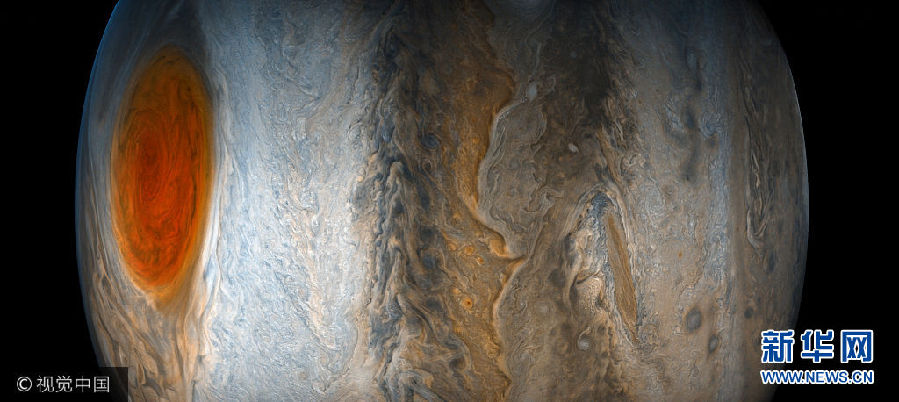 7月10日讯,美国宇航局“朱诺号”探测器首次掠过木星大红斑上空采集数据,使用机载仪器能够穿透云层下方。这个循环动画模拟了木星大红斑中云层运动。 (图片来源:视觉中国)