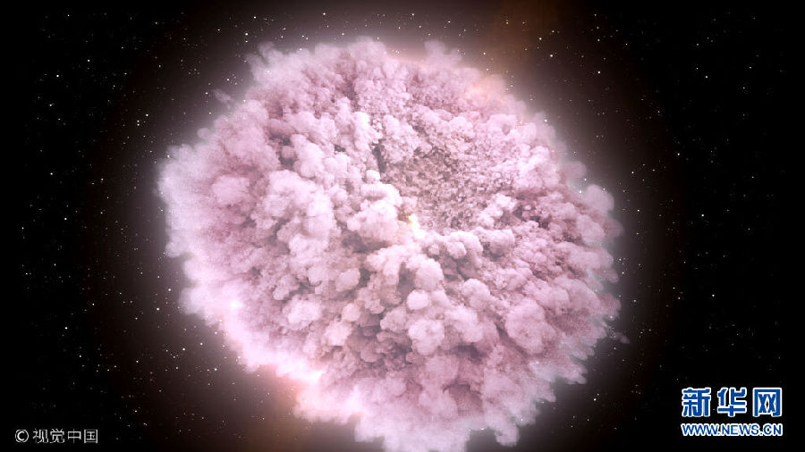 10月16日讯,美国国家航空航天局(NASA)网站日前就发布了中子星碰撞时产生的超美粉色云团图。当中子星碰撞时,高温高密度且不断膨胀的碎片云从两个中子星上剥落,形成了图中粉色的云团。在这个云团中,形成了大量的宇宙超重金属。 (图片来源:视觉中国)