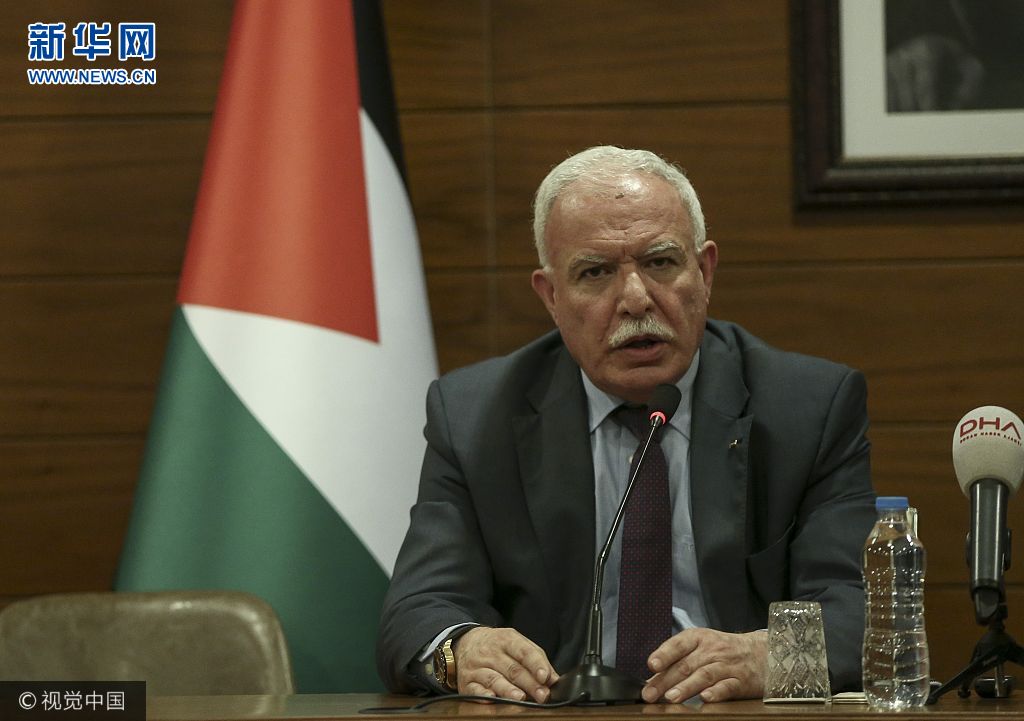 当地时间2017年12月20日,土耳其伊斯坦布尔,巴勒斯坦外长马勒基出席新闻发布会,呼吁联合国大会在21日举行的紧急会议上认定美国承认耶路撒冷为以色列首都的决定“无效”。(图片来源:视觉中国)