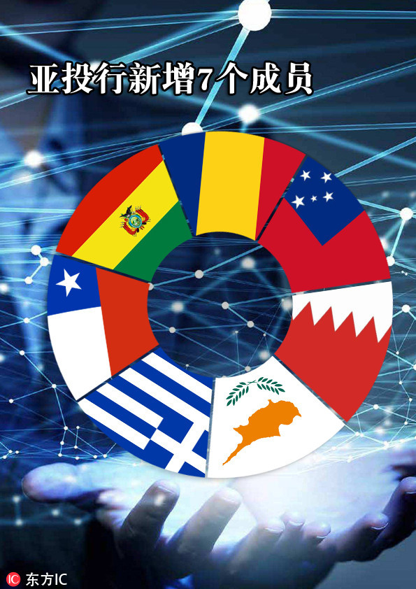 【二度“扩围”】2017年5月13日,亚投行批准新一批7个意向成员加入,成员总数扩大到77个。此次新增的7个成员包括巴林、塞浦路斯、萨摩亚3个域内成员和玻利维亚、智利、希腊、罗马尼亚4个非域内成员。