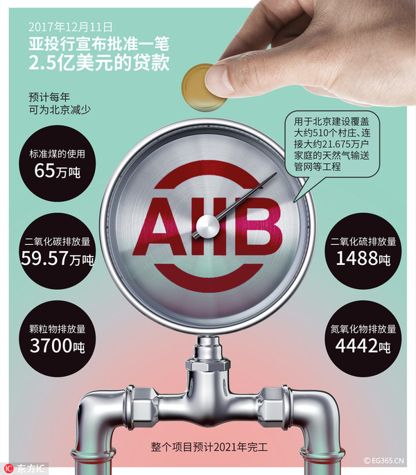 【首个对华项目落户北京】2017年12月11日,亚投行首个对华项目落户北京,用于天然气输送管网建设等工程,助力“北京蓝”。秉持“简洁、廉洁、清洁”的核心价值观的亚投行,赢得世界广泛信任。