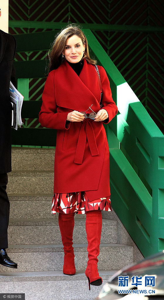 西班牙王后莱蒂齐亚一身红衣现身 优雅大方