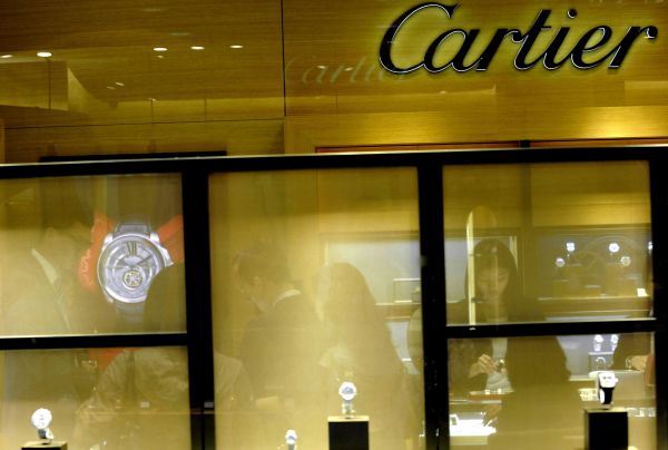 资料图:游客在香港海港城的卡地亚专卖店购买奢侈品。 新华社发