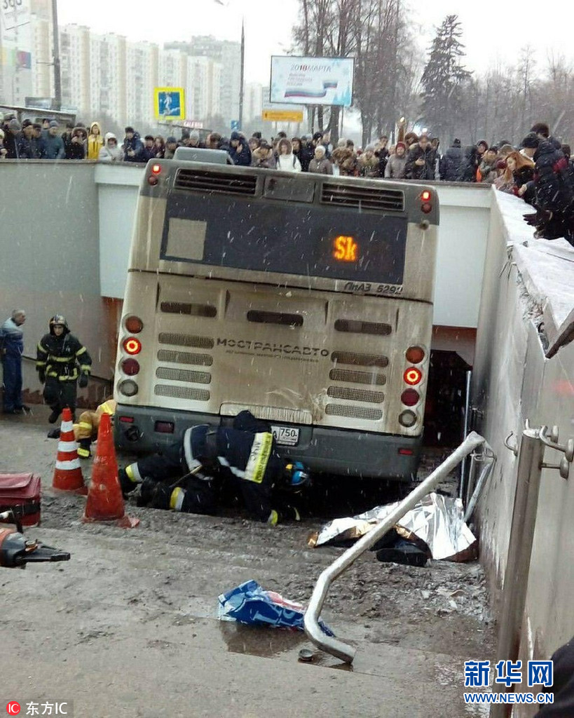 莫斯科一辆公交车开进地下通道 致5死15伤