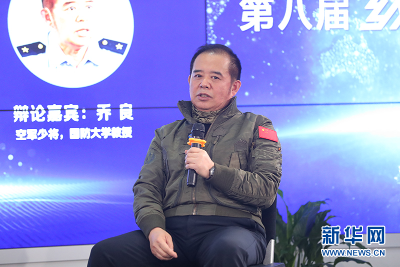 12月26日,新华网第八届“纵论天下”国际问题研讨会成功举行。图为空军少将、国防大学教授乔良在发言。新华网发(郭小天摄)。