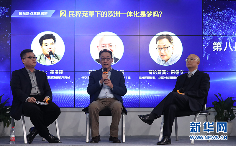 12月26日,新华网第八届“纵论天下”国际问题研讨会成功举行。图为中国社科院国际合作局副局长、欧洲问题专家田德文在发言。新华网发(郭小天摄)。