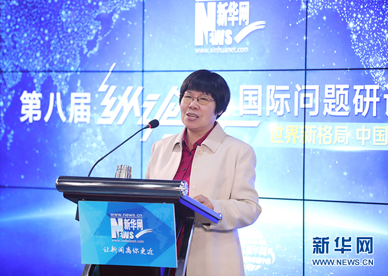 12月26日,新华网第八届“纵论天下”国际问题研讨会成功举行。图为中国现代国际关系研究院研究员陈凤英在主旨演讲。新华网发(郭小天摄)。