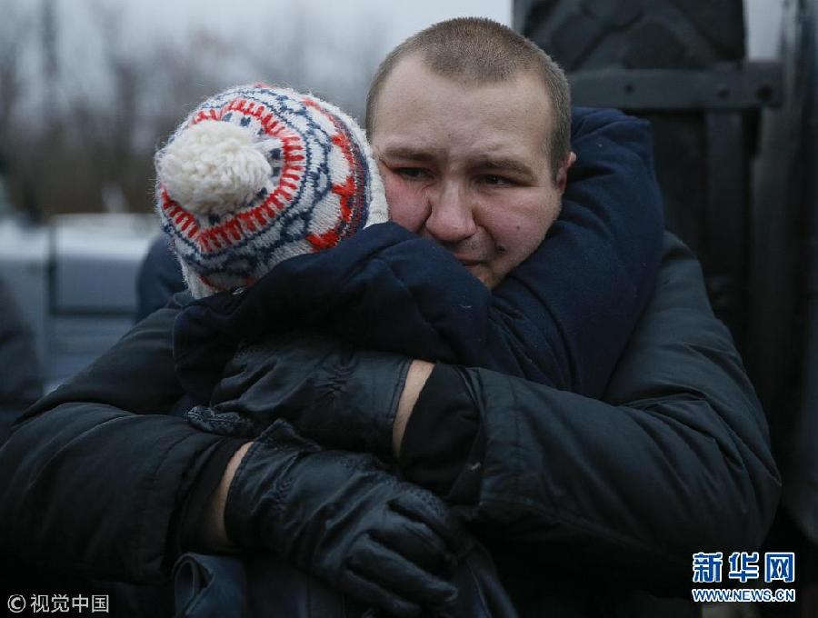 12月27日,乌克兰哈尔科夫,获释战俘抵达哈尔科夫。乌克兰政府军与东部民间武装当日举行了大规模的交换战俘行动。(图片来源:视觉中国)