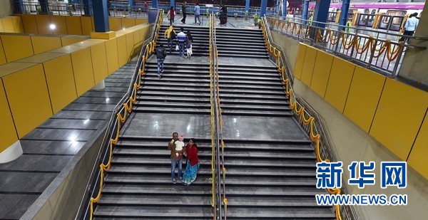 12月25日,在印度首都新德里洋红色地铁线,人们站在站台台阶上驻足留影。当日,连接新德里及其卫星城诺伊达(Noida)之间的洋红色地铁线建成通车。这条线路全长12.64公里。德里地铁公司计划未来提高这条地铁线路自动化水平,以“无人值守模式”运行。目前,新德里运营地铁线路共有7条,分别用颜色命名,包括红色、黄色、蓝色、绿色、橙色、紫罗兰和洋红色。新华网发 (张迺杰 摄)