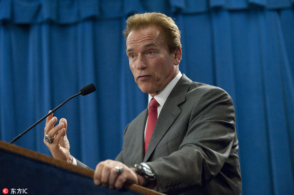 【“终结者”施瓦辛格】2003年11月17日,施瓦辛格宣誓就任美国加州第38任州长。作为健美运动员时,施瓦辛格曾获得“环球先生”、“ 奥林匹亚先生“等多项殊荣。(新华网国际频道 徐海知)