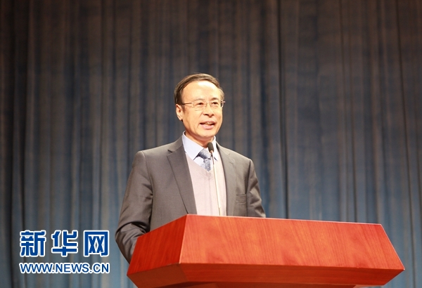 12月29日,首都侨界学习党的十九大精神报告会在京举行。图为中国侨联主席万立骏发表讲话。新华网发 巩阳摄