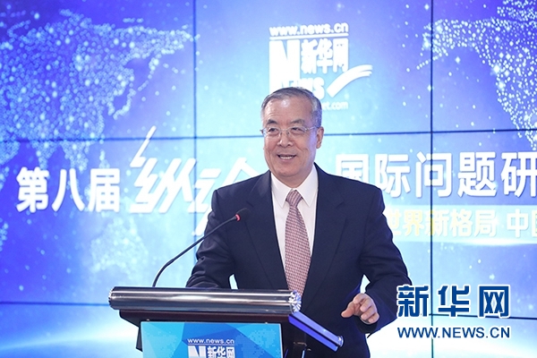 苏格在新华网第八届“纵论天下”国际问题研讨会发表演讲。新华网发 郭小天摄