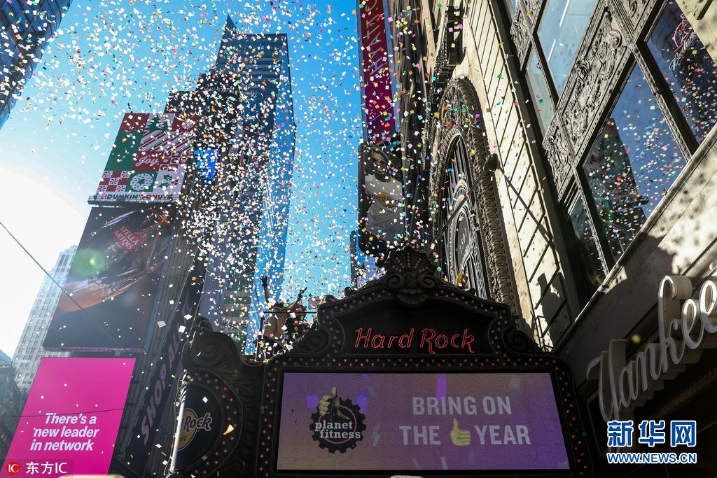 当地时间2017年12月29日,美国纽约,纽约时代广场测试撒彩屑,为迎新庆祝活动做准备。 (图片来源:东方IC)