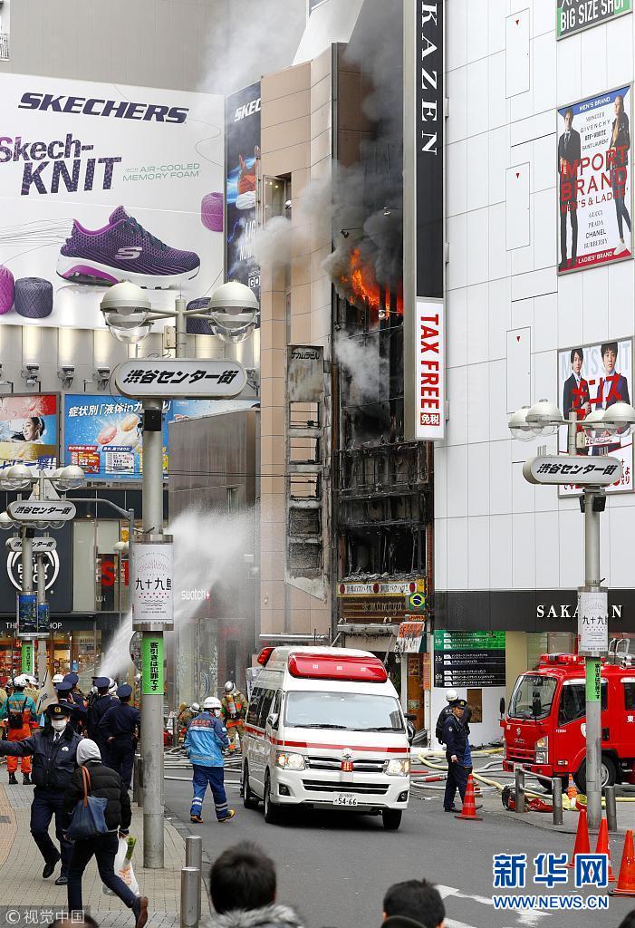 东京涩谷一栋建筑发生火灾 现场浓烟滚滚